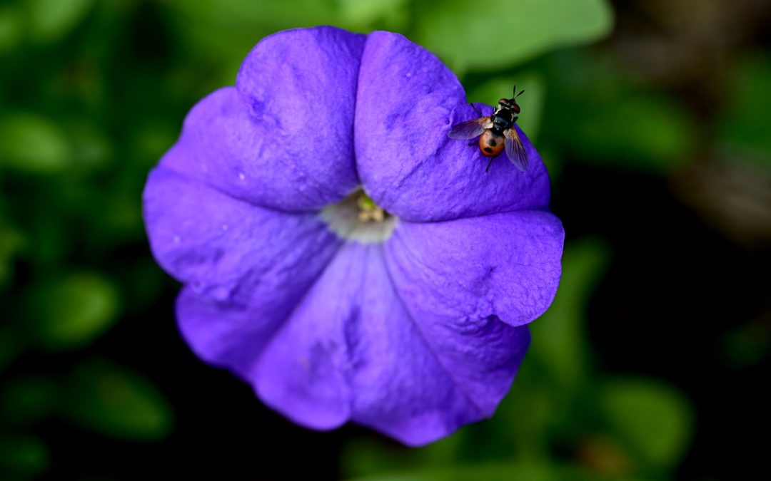 A vibrant blue-purple petunia