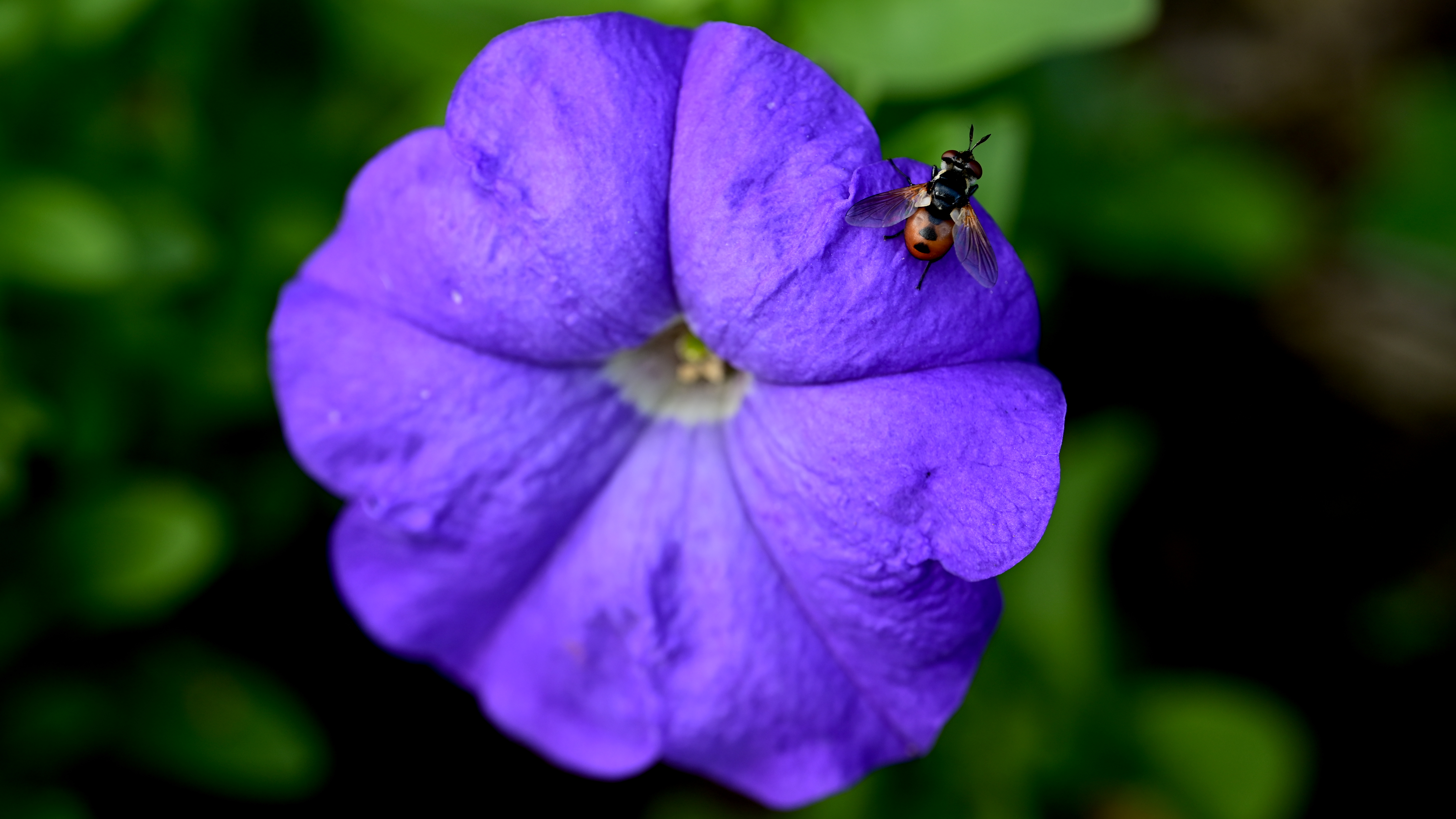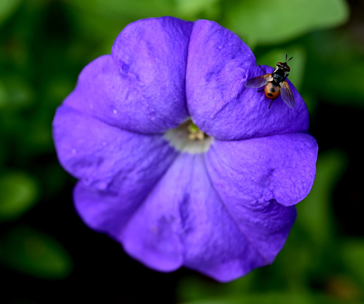 A vibrant blue-purple petunia