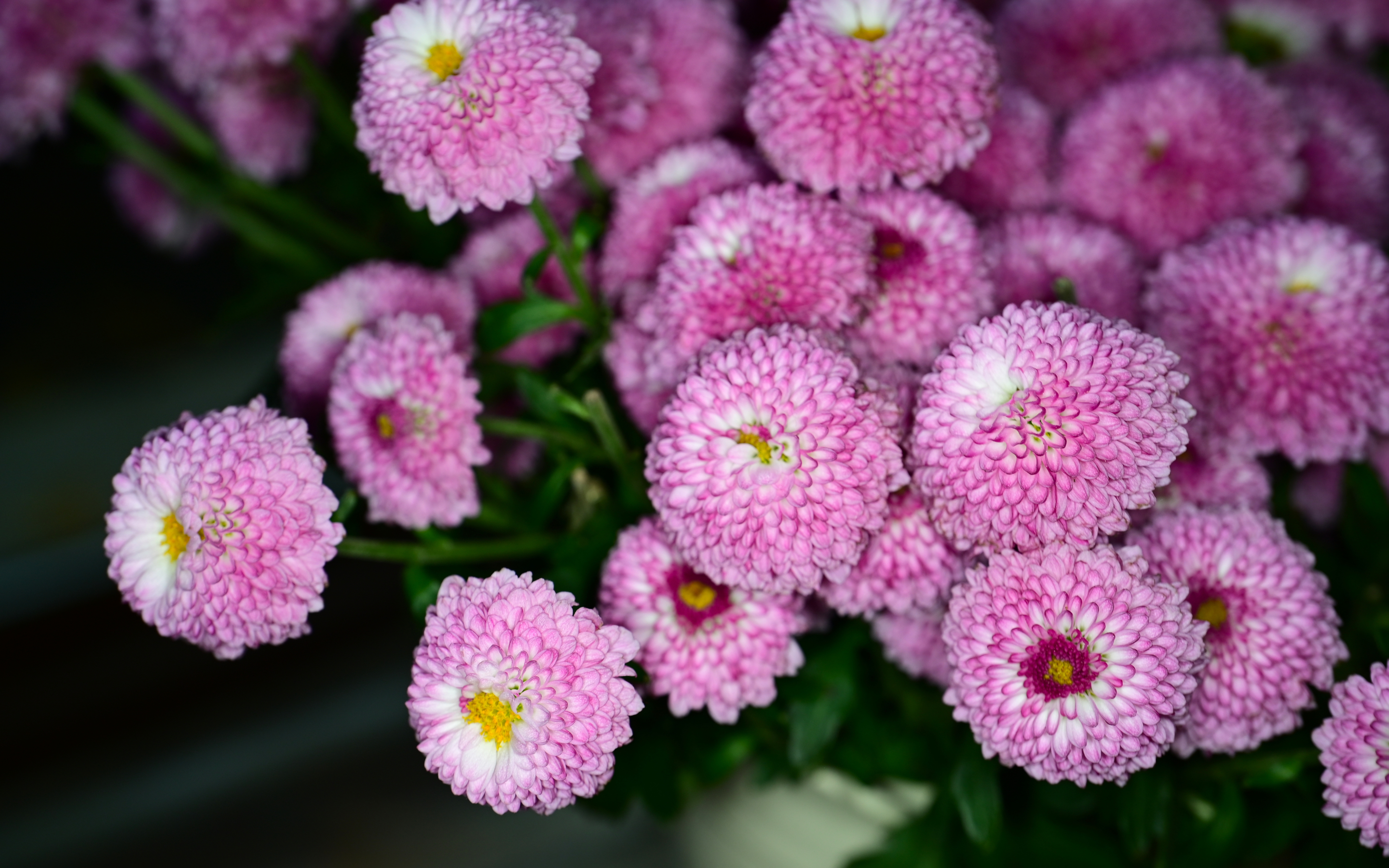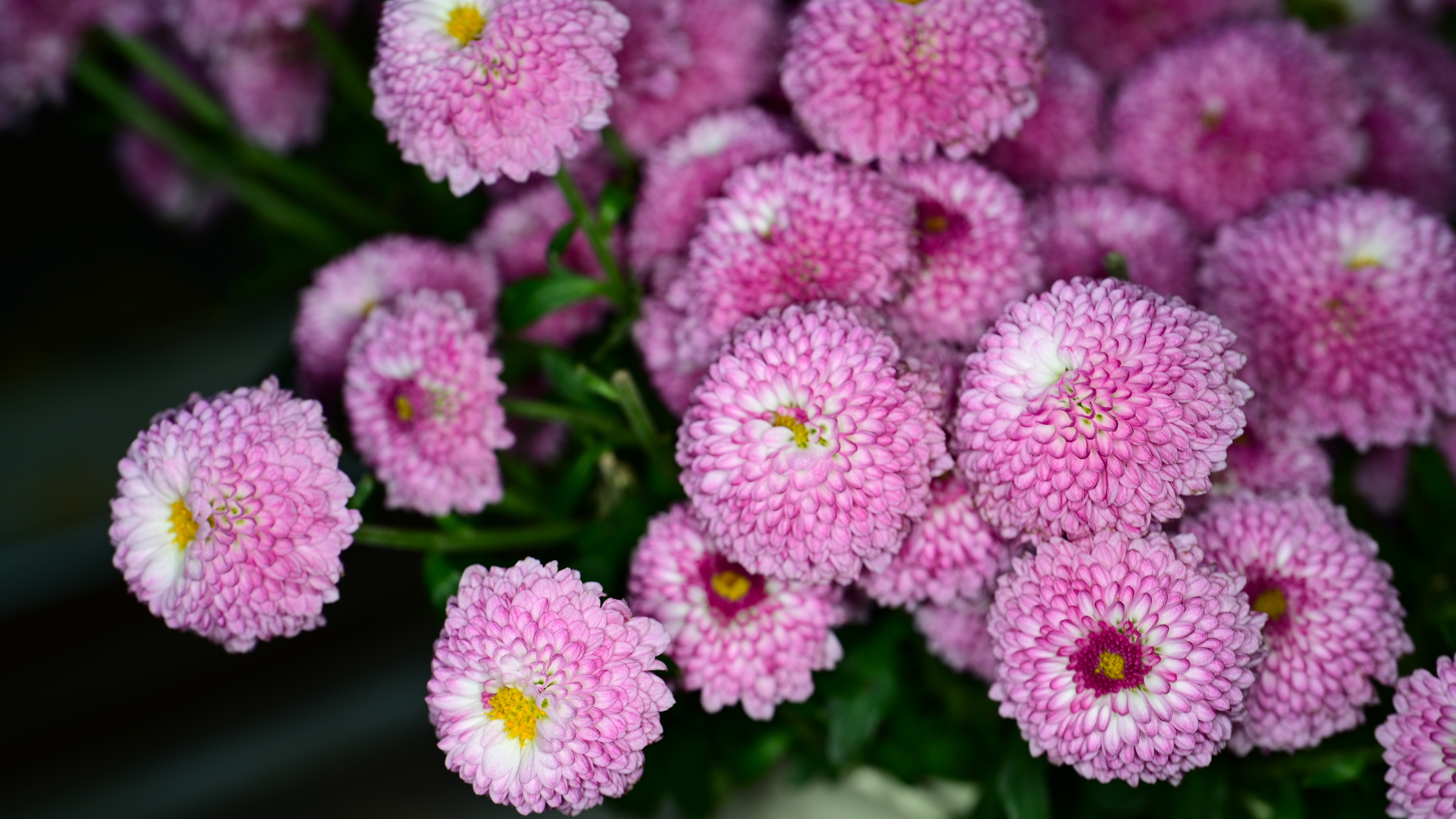Pink December Chrysanthemums in Bloom